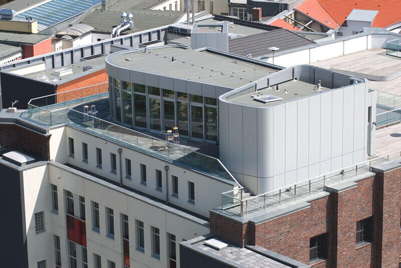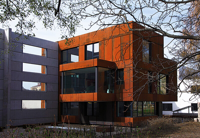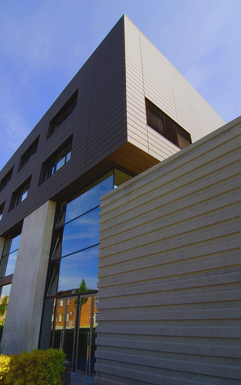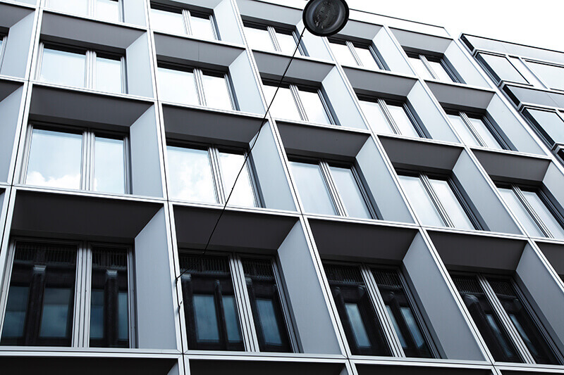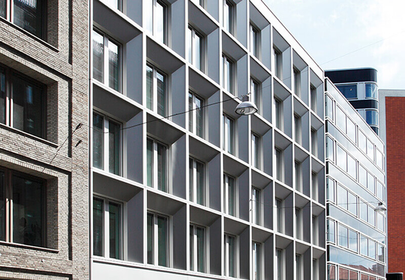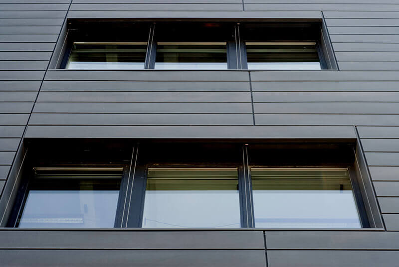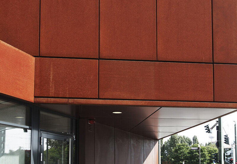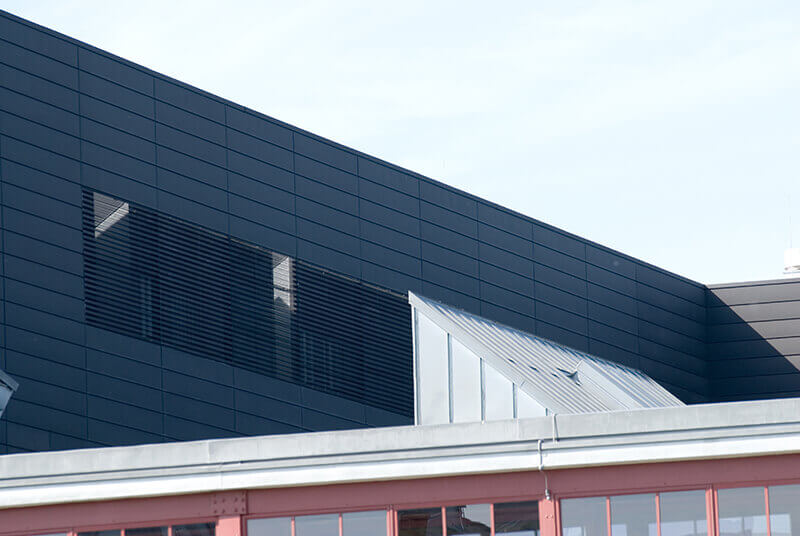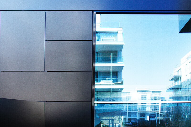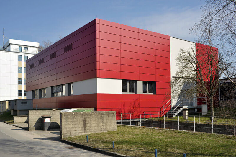 Kassettenfassade aus farbbeschichtetem Aluminium