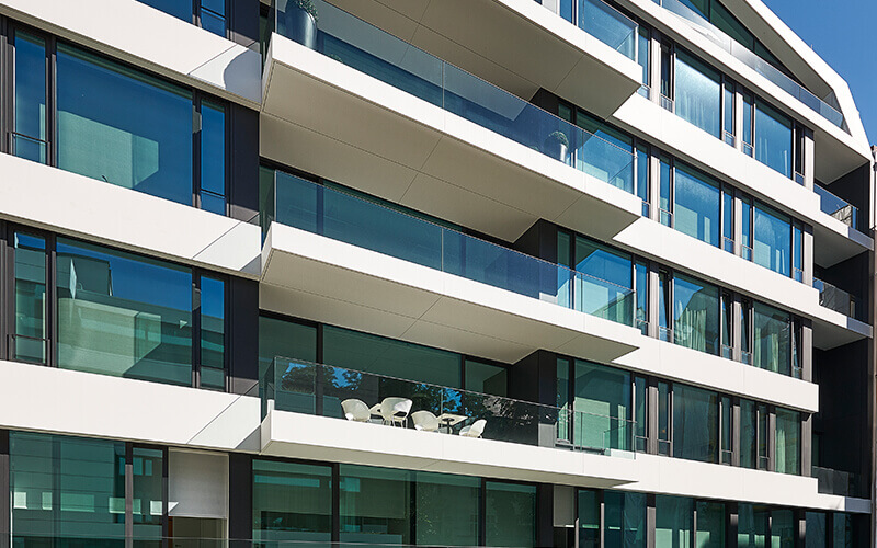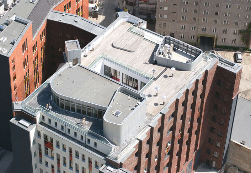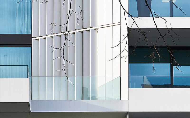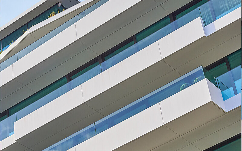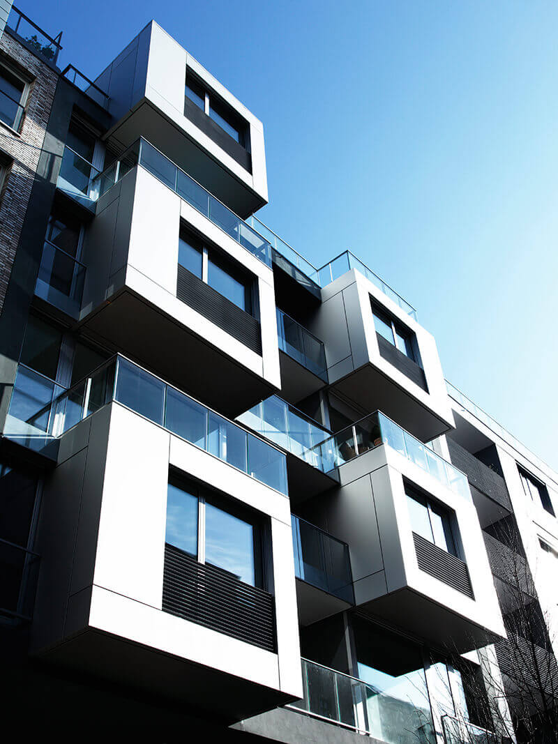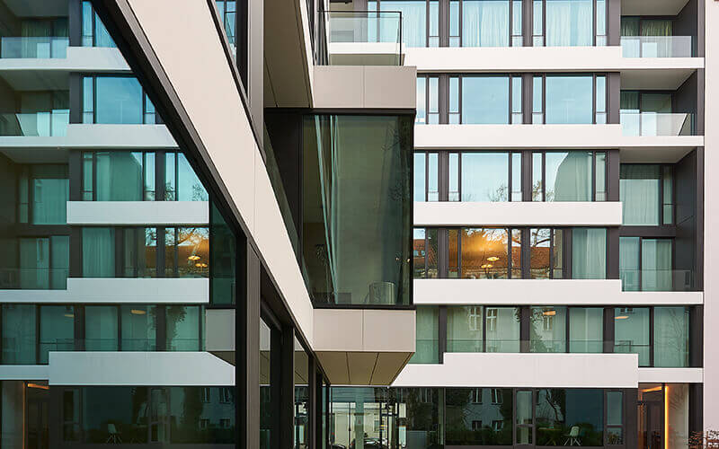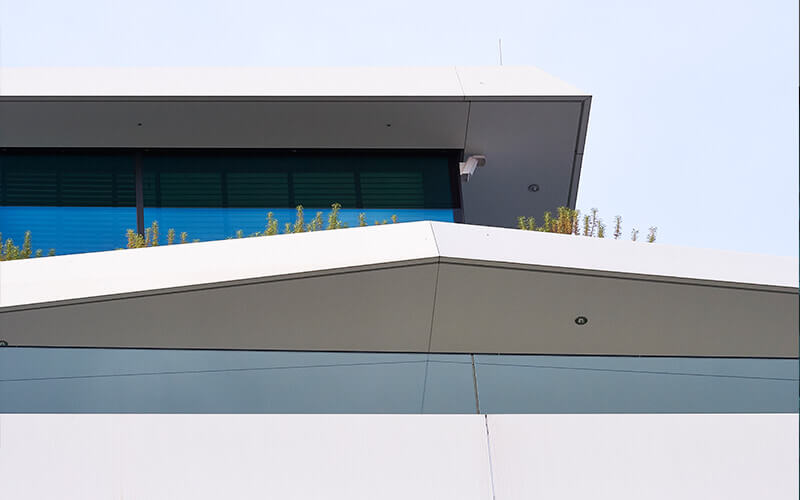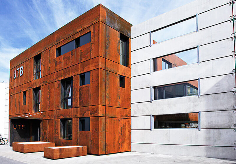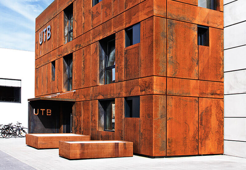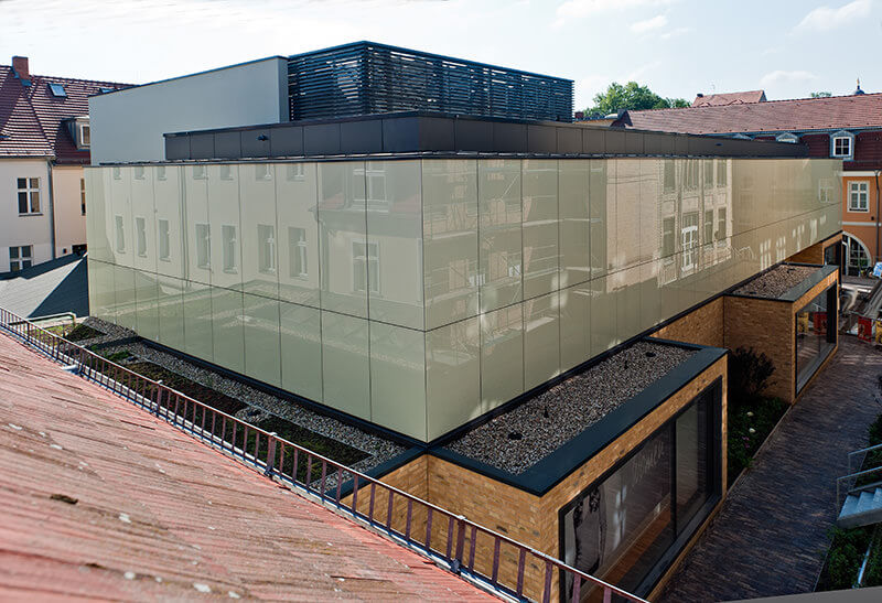 Kassettenfassade aus farbbeschichtetem Aluminium