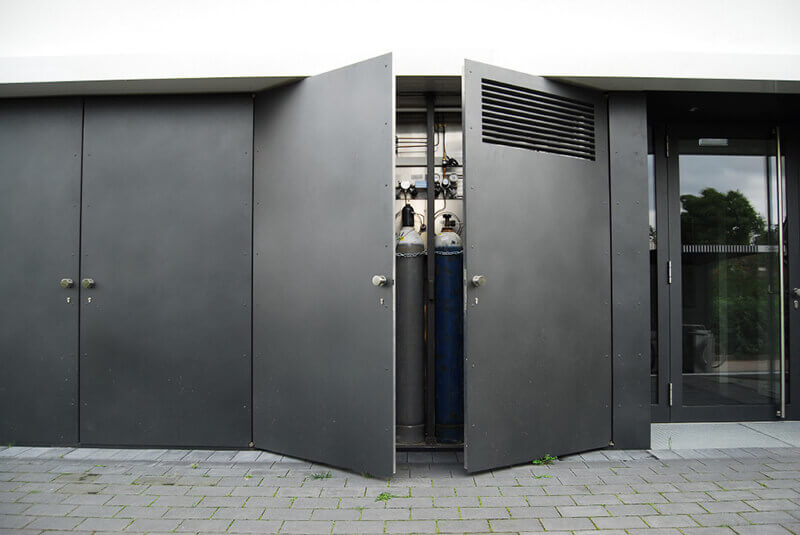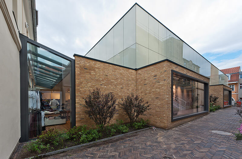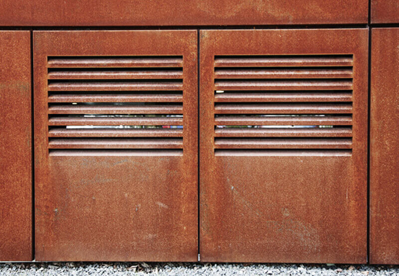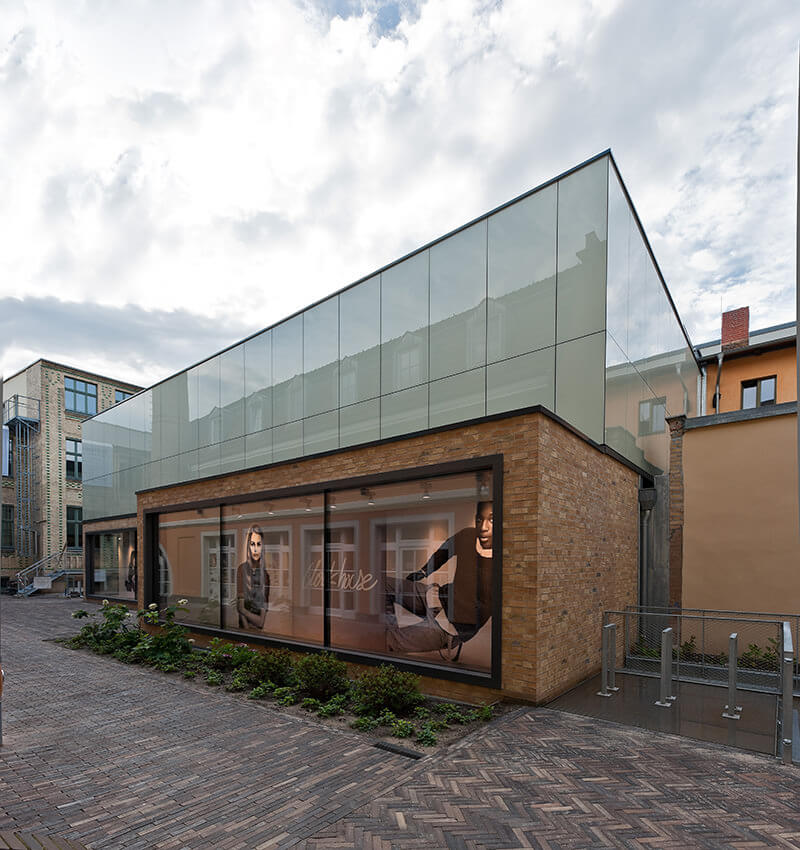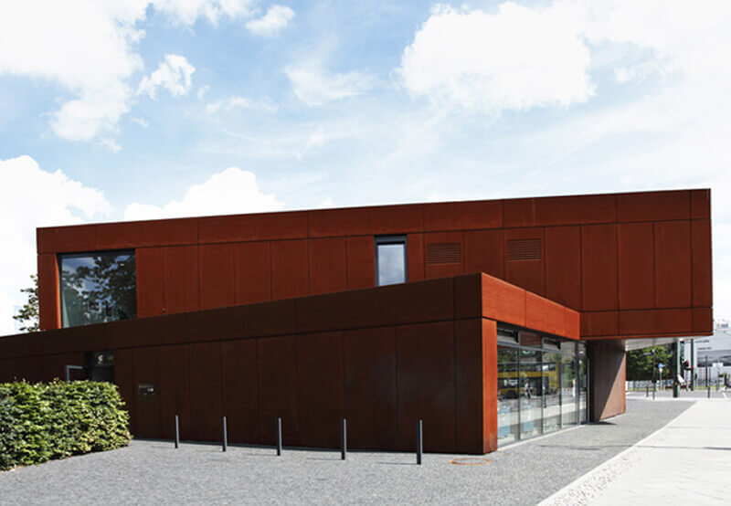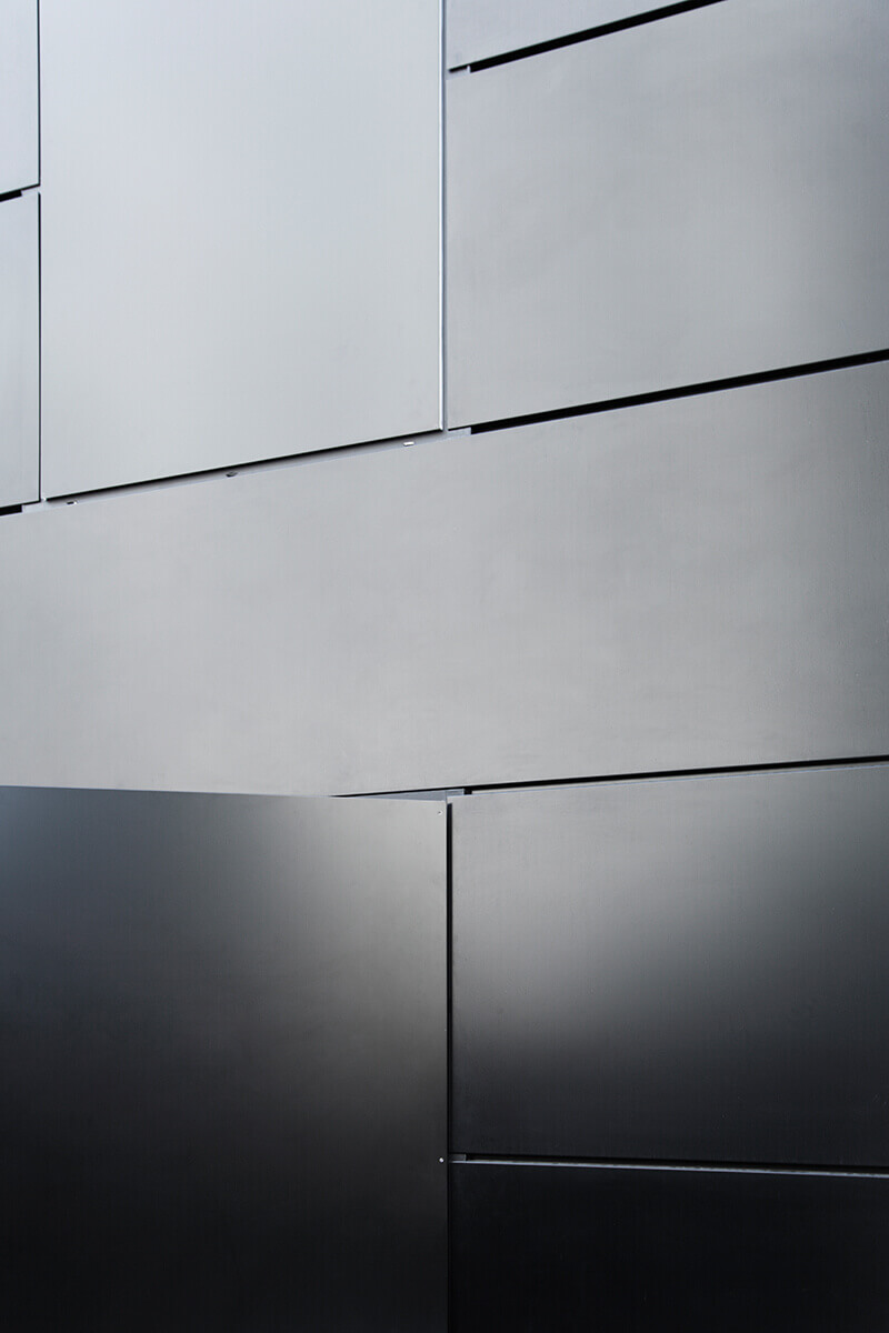 Boxenfassade aus eloxierten Aluminium-Kassetten
