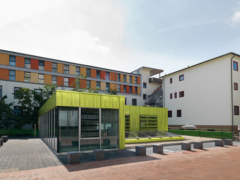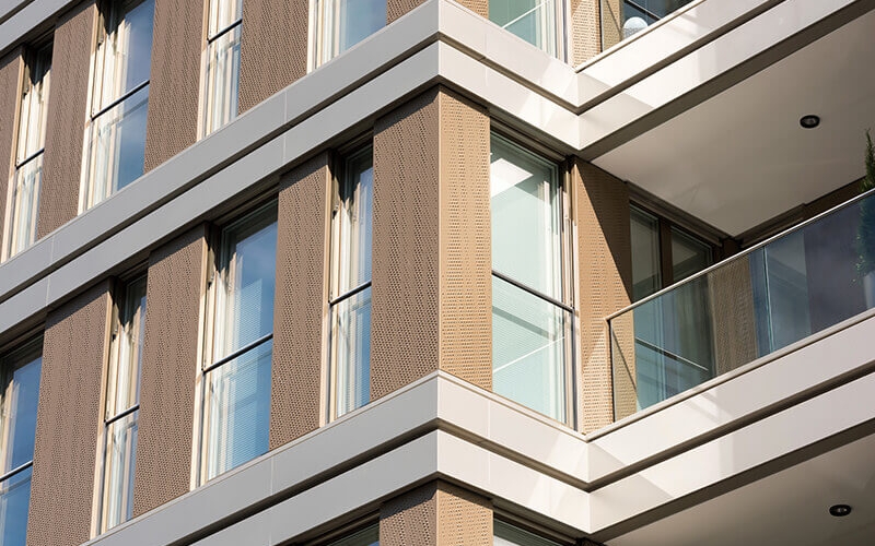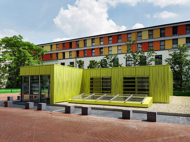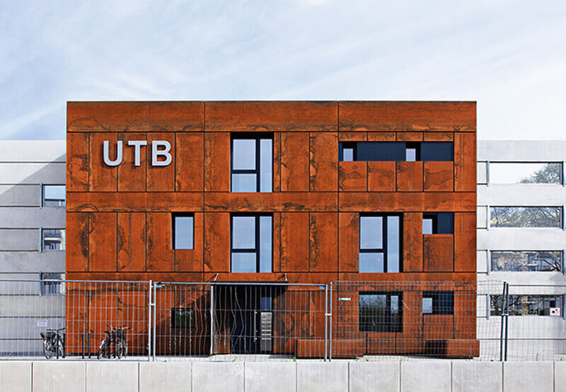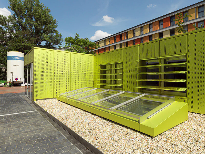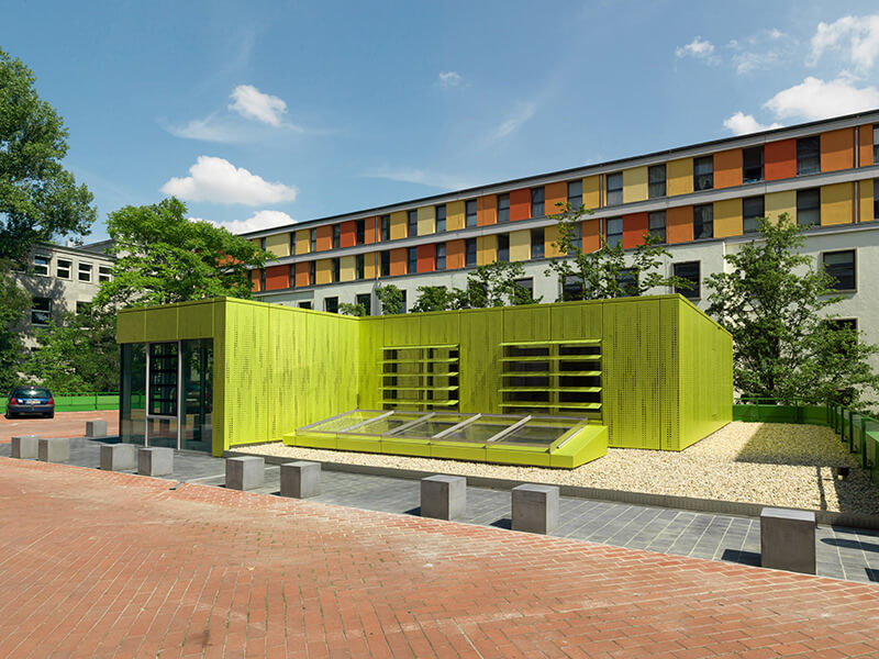 Gelochte Aluminiumfassade mit Sonderfarbton