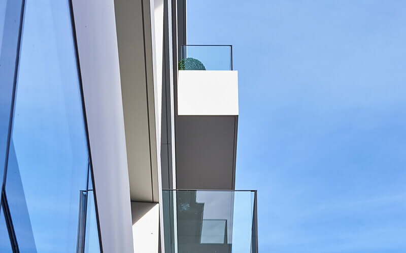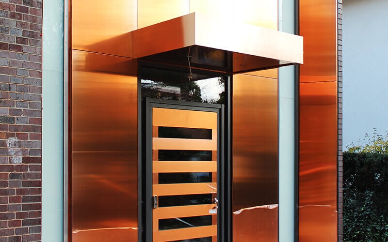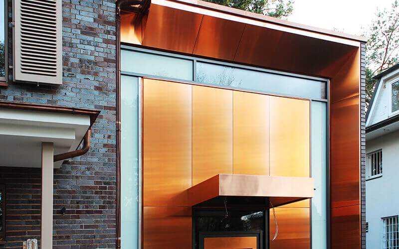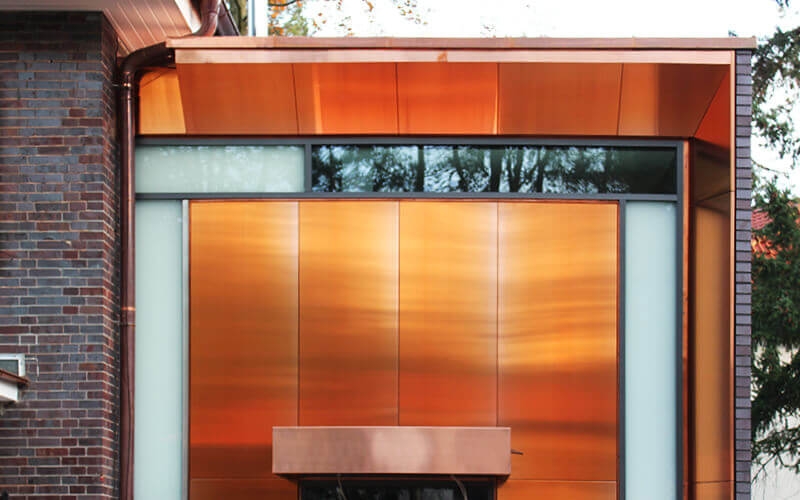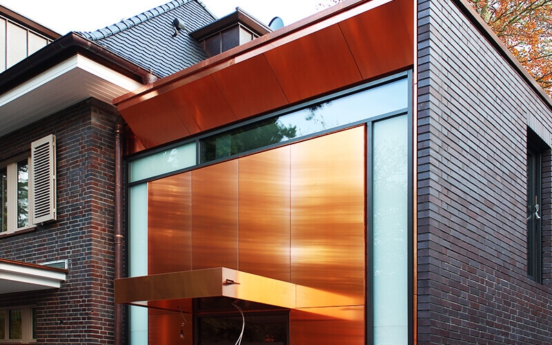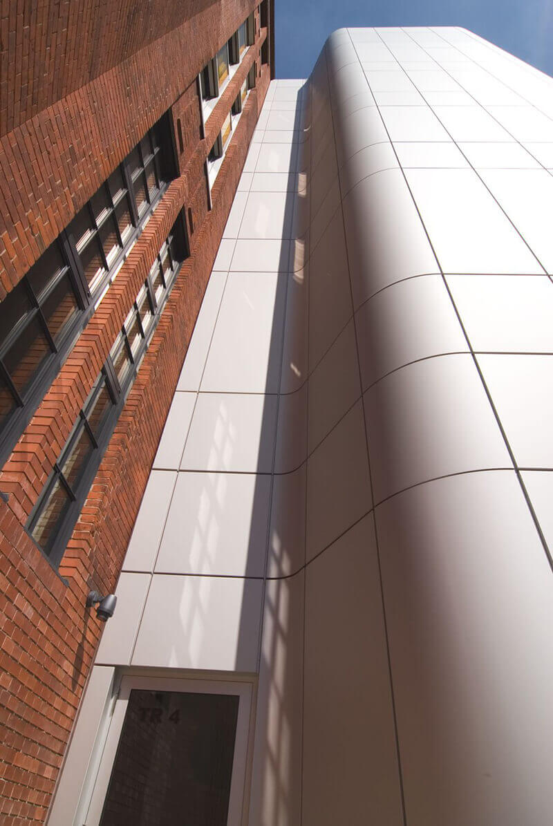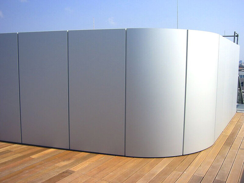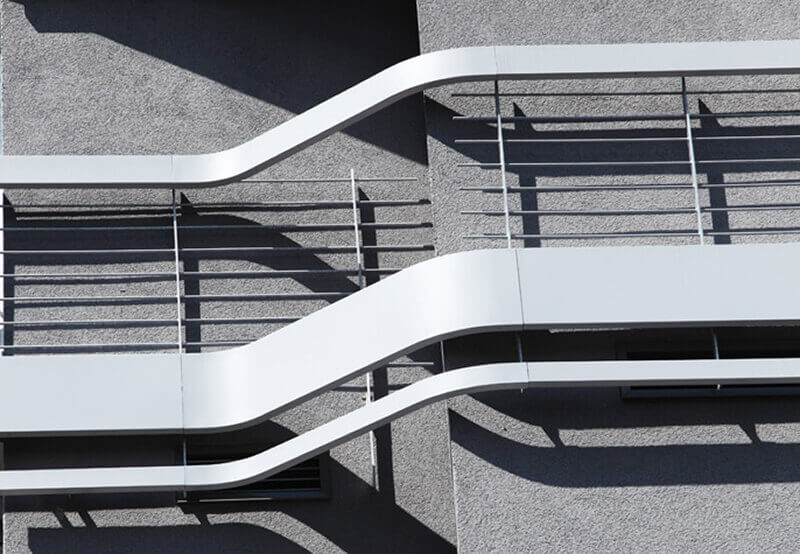 Gerundete Attikaverblendung und Lampendesignverkleidung aus Aluminium
