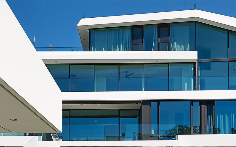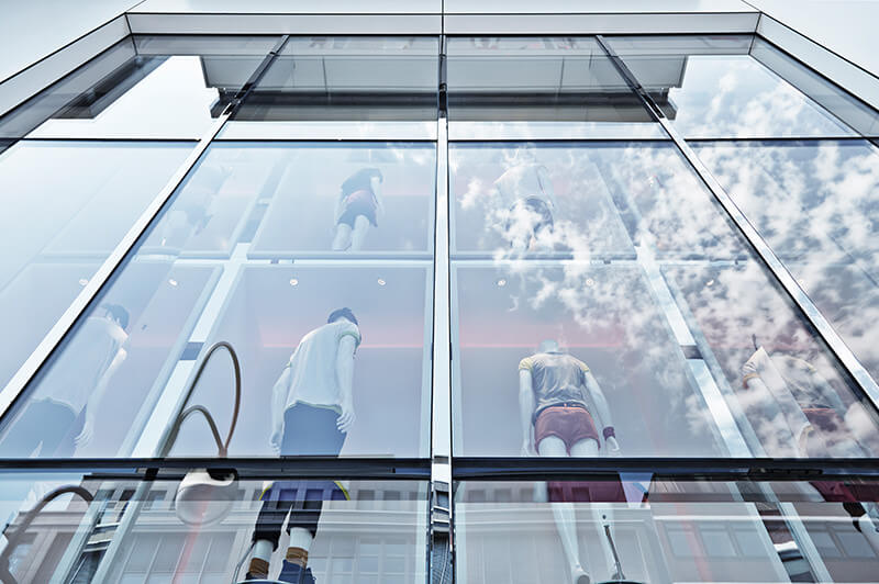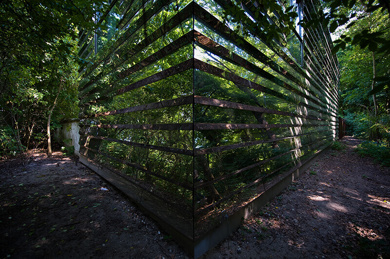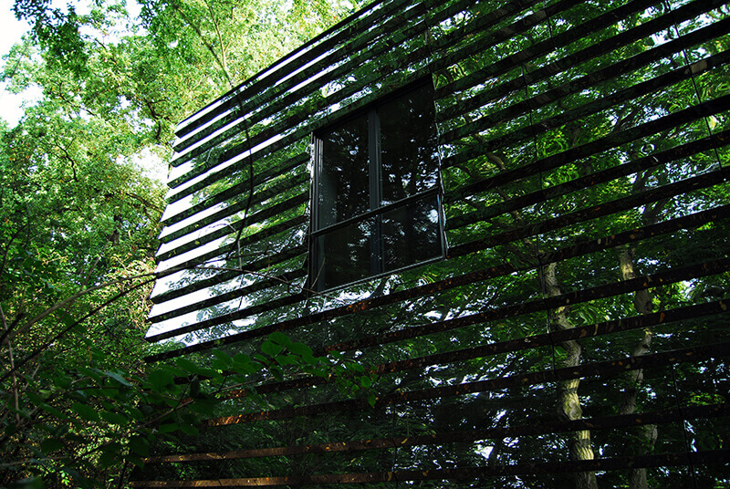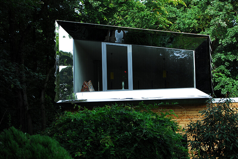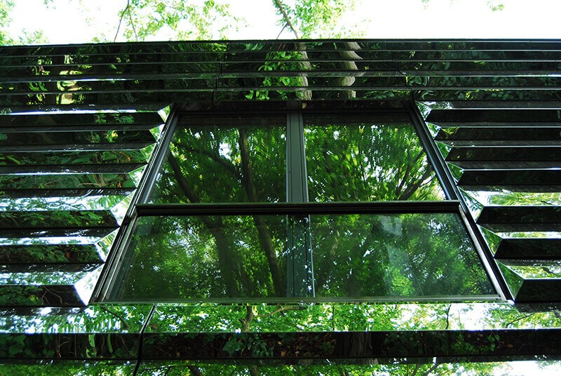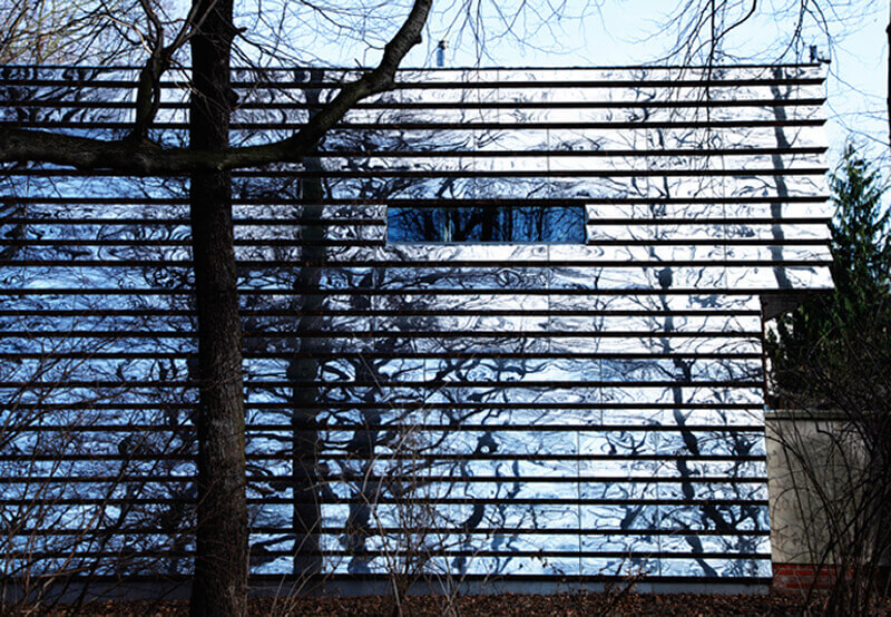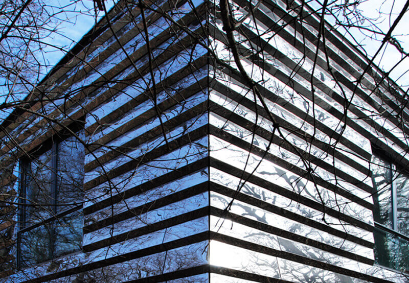 Geklebte Fassade aus spiegelpolierten Edelstahlelementen