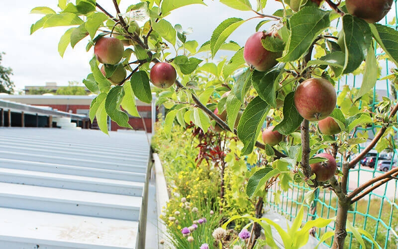 Auch auf das Betriebsklima wirkt sich das begrünte Dach aus, denn die Mitarbeiter profitieren das ganze Jahr lang von Obst und Gemüse und lassen auf dem Gründach auch mal den Alltag fallen.